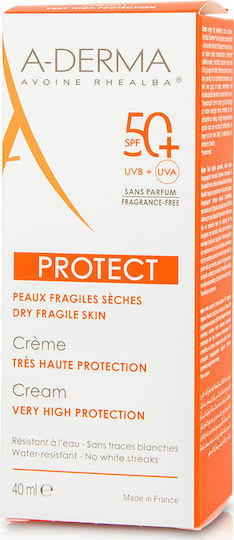A-Derma Cream Protect Χωρίς Άρωμα Αντηλιακή Κρέμα Προσώπου SPF50 40ml