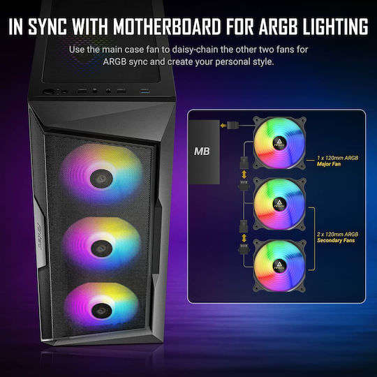 Antec AX61 Midi Tower Κουτί Υπολογιστή με Πλαϊνό Παράθυρο και RGB Φωτισμό Μαύρο