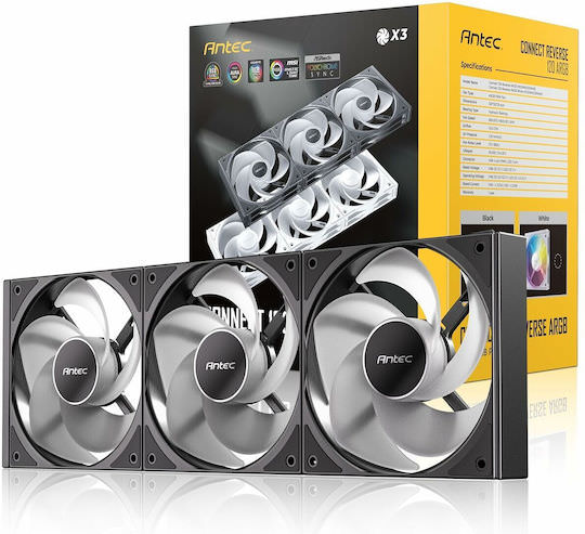 Antec Connect C120R Reverse Case Fan με ARGB Φωτισμό και Σύνδεση 3-Pin / 4-Pin PWM 3τμχ