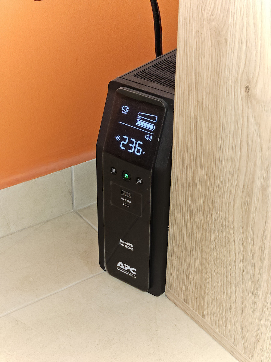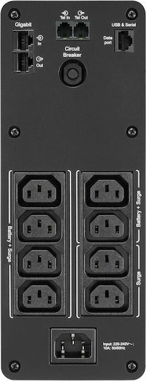 Το Back UPS Pro 1600 Line-Interactive 1600VA 960W με 6 IEC Πρίζες της APC είναι ένα Tower UPS. Διαθέτει 6 πρίζες τύπου IEC (όπως αυτή των τροφοδοτικών για υπολογιστές) καθώς και υποδοχή και έξοδο για καλώδιο ethernet προστατεύοντας τις συσκευές που συνδέονται με αυτό π.χ. router (εφόσον είναι συνδεδεμένη και η τροφοδοσία τους σε UPS ή πολύπριζο ασφαλείας). Η λειτουργία του είναι (VI) Line-Interactive που προσαρμόζει την τάση εξόδου συνεχώς μέσω αυτόματου ρυθμιστή τάσης προστατεύοντας από αυξομειώσεις της τάσης και διακοπές του ρεύματος. Προσφέρει ρεύμα καθαρού ημιτόνου που είναι κατάλληλο για ευαίσθητες συσκευές (πχ ιατρικά μηχανήματα) και προτιμάται για συσκευές με τροφοδοτικά που έχουν active PFC προστασία (πχ υπολογιστές).