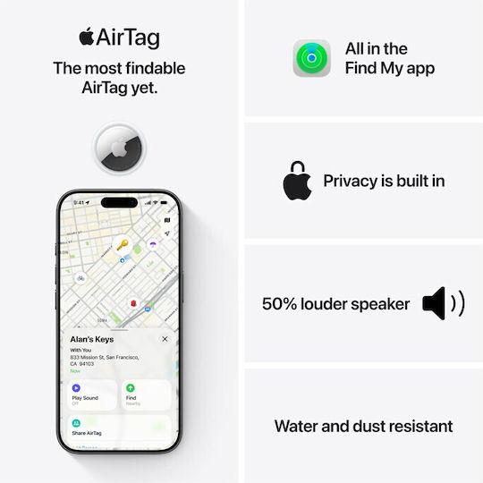 Το AirTag (2ης γενιάς) διαθέτει τώρα το πιο δυνατό ηχείο που είχε ποτέ καθώς και διευρυμένο εύρος Εύρεσης ακριβείας, κάνοντας πιο εύκολη από ποτέ την εύρεση των αντικειμένων σου.