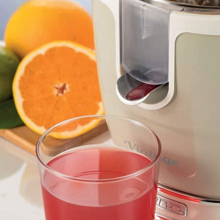 Ηλεκτρικός στίφτης Vintage 0413, της εταιρείας Ariete, με ισχύ 85 Watt. Διαθέτει έναν κώνο μικρού μεγέθους κατάλληλο για λεμόνια, και έναν κώνο κανονικού μεγέθους κατάλληλο για πορτοκάλια, ώστε να μπορείτε να φτιάχνετε χυμούς σύμφωνα με το προσωπικό σας γούστο οι οποίοι θα είναι πάντα φρέσκοι. Το φίλτρο που συμπεριλαμβάνεται θα ξεχωρίσει τον χυμό από τον πολτό και τα κουκούτσια, δίνοντας σας το βέλτιστο αποτέλεσμα και την καλύτερη γεύση. Το δοχείο συλλογής χυμού έχει χωρητικότητα 600 ml με διαβαθμισμένη κλίμακα, ώστε να είστε πάντα ενήμεροι για την ποσότητα χυμού που έχετε παράξει.