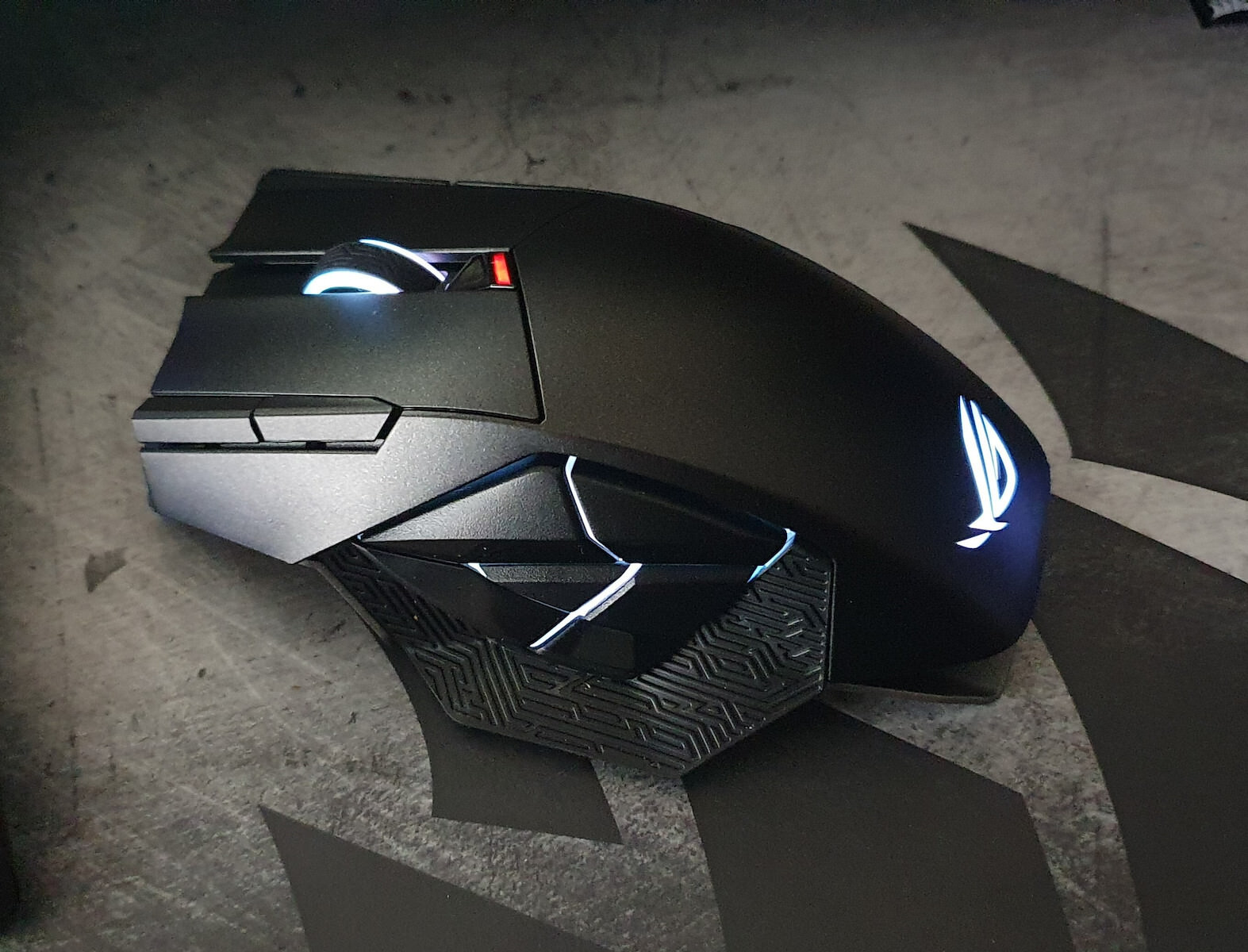 Ο σχεδιασμός περιλαμβάνει συνολικά 12 προγραμματιζόμενα πλήκτρα, προσφέροντας πλήρη παραμετροποίηση εντολών. Στην αριστερή πλευρά της συσκευής υπάρχουν 6 κουμπιά τοποθετημένα σε διάταξη που προσομοιάζει το λογότυπο ROG, σχεδιασμένα για εύκολη πρόσβαση με τον αντίχειρα και διακριτή απτική ανάδραση (tactile feedback). Μέσω του λογισμικού Armoury Crate, ο χρήστης μπορεί να χαρτογραφήσει μακροεντολές και λειτουργίες. Επιπλέον, η λειτουργία DPI On-The-Scroll επιτρέπει την άμεση ρύθμιση της ευαισθησίας του αισθητήρα μέσω του τροχού κύλισης, χωρίς την ανάγκη μετάβασης στο μενού του λογισμικού.