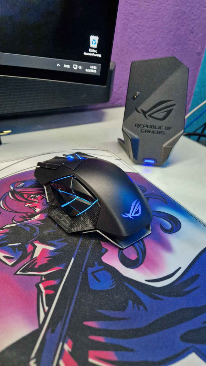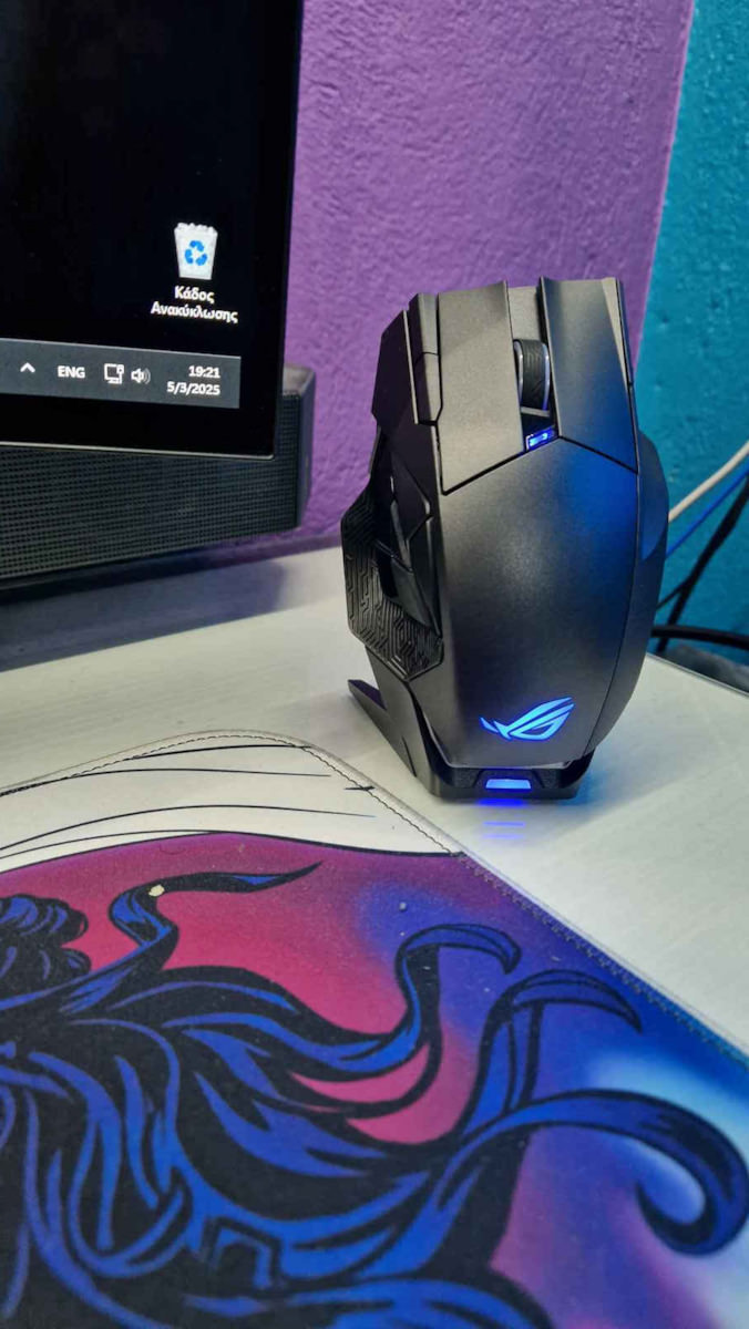 Η συσκευή συνοδεύεται από μια ειδική μαγνητική βάση φόρτισης για εύκολη αποθήκευση και αναπλήρωση ενέργειας. Η μπαταρία παρέχει αυτονομία έως και 67 ώρες σε ασύρματη λειτουργία (με τον φωτισμό RGB απενεργοποιημένο). Υποστηρίζεται τεχνολογία ταχείας φόρτισης, όπου 15 λεπτά φόρτισης αρκούν για έως και 12 ώρες χρήσης. Κατά την ενσύρματη λειτουργία ή φόρτιση, το καλώδιο ROG Paracord εξασφαλίζει μειωμένη τριβή και ευελιξία, ενώ η υπερυψωμένη θύρα σύνδεσης αποτρέπει την επαφή του καλωδίου με την επιφάνεια του γραφείου, ελαχιστοποιώντας την αντίσταση στην κίνηση.