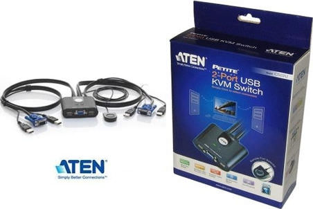 Aten 2-Port USB VGA Cable KVM Switch with Remote Port Selector
