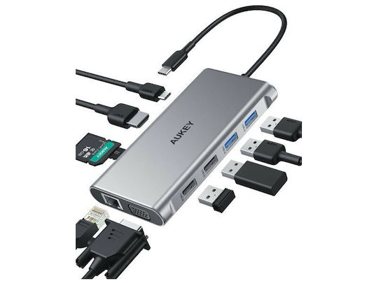 Aukey USB-C / USB-A Docking Station με 4K PD Ethernet Γκρι (AIAUKACBC890000)