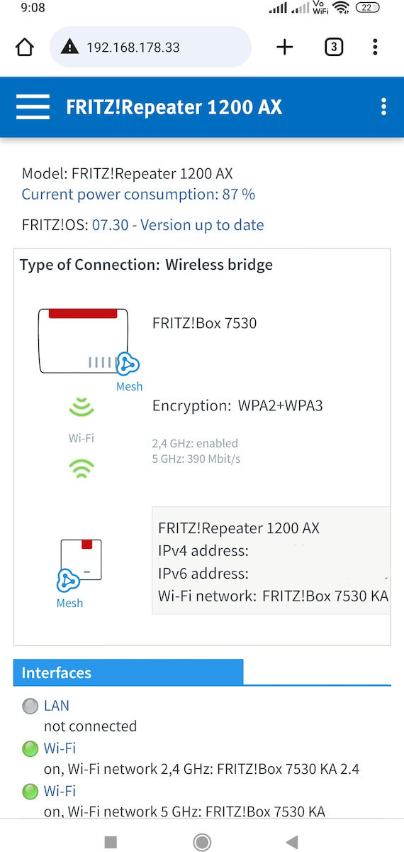 Το FRITZ!Repeater 1200 AX υποστηρίζει Mesh Wi-Fi, που σημαίνει ότι τα βίντεο, η μουσική και οι φωτογραφίες σας φτάνουν απρόσκοπτα σε κάθε γωνιά του σπιτιού, του διαμερίσματος ή του γραφείου σας. Πώς λειτουργεί; Οι συσκευές συνεργάζονται ως μέρος ενός ενιαίου δικτύου, επικοινωνώντας μεταξύ τους και βελτιστοποιώντας τις ασύρματες συσκευές και τη χρήση του δικτύου.