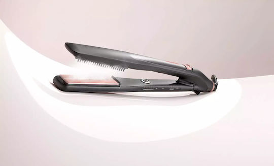 Πρέσα μαλλιών υψηλής απόδοσης με λειτουργία advanced ατμού. Ο ατμός διεισδύει μέσα από τα μαλλιά, μαλακώνει και προστατεύει την τρίχα. Το σύστημα θέρμανσης Advanced Ceramics™ εξασφαλίζει γρήγορη απόκτηση θερμοκρασίας και σταθερή θερμότητα σε κάθε τμήμα της πλάκας. Διαθέτει φαρδιές πλάκες ισιώματος, ιδανικές για πιο μακριά και πυκνά μαλλιά, με επιλογή χτενών για εύκολο ξεμπέρδεμα, κατάλληλη για όλους τους τύπους μαλλιών.