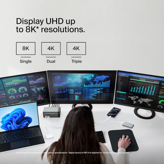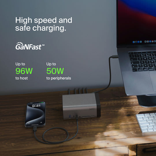 Αποκτήστε μια ισχυρή λύση σύνδεσης με την τεχνολογία GaN του Belkin USB-C 11-in-1 Pro GaN Dock, που προσφέρει ταχύτερη και πιο αποδοτική φόρτιση. 11 θύρες εξασφαλίζουν συνδέσεις για τροφοδοσία, δεδομένα, αποθήκευση, βίντεο, ήχο και Ethernet. Έχει υποστήριξη τριπλής οθόνης (για Windows OS) και κομψό, συμπαγή σχεδιασμό για οργανωμένο περιβάλλον εργασίας.