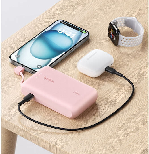 Belkin BoostCharge Power Bank 10000mAh 20W με Θύρα USB-C Ροζ