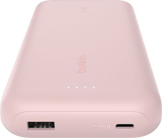 Belkin BoostCharge Power Bank 20000mAh 30W με Θύρα USB-A και Θύρα USB-C Power Delivery Ροζ