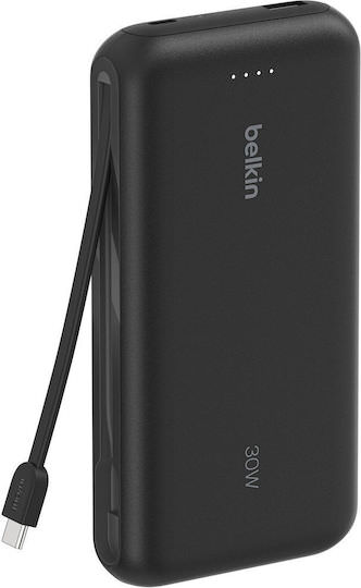 Φορτίστε έως και 30 W με το ελαφρύ power bank Belkin BoostCharge Power Bank 20K with Integrated Cable Black. Ο σχεδιασμός με ενσωματωμένο καλώδιο USB-C προσφέρει μια βολική εμπειρία γρήγορης φόρτισης εν κινήσει.