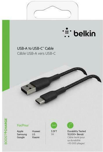 Belkin Braided USB 2.0 Cable USB-C male – USB-A 15W Μαύρο 1m (CAB002bt1MBK)
