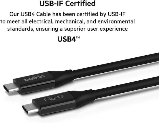 Belkin Connect USB 4 Cable USB-C male – USB-C 100W Μαύρο 0.8m (INZ001BT0.8MBK)