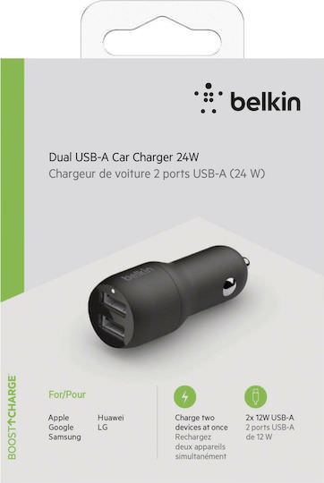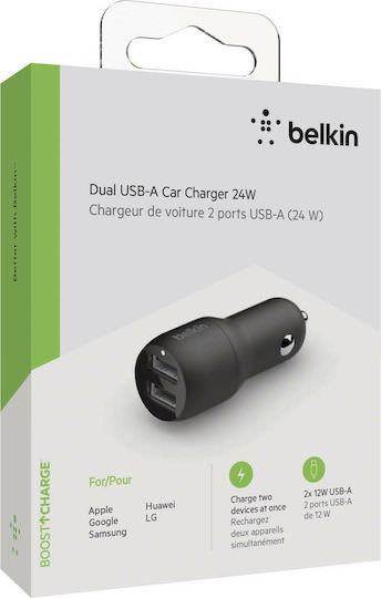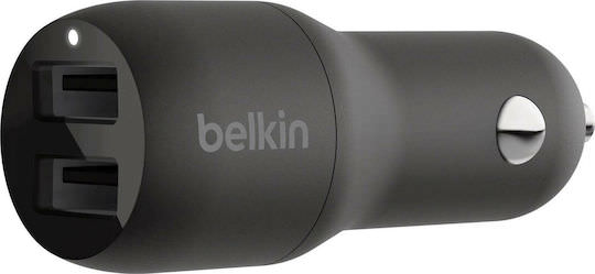 Belkin Φορτιστής Αυτοκινήτου 24W 4.8A με Θύρες: 2xUSB Μαύρος