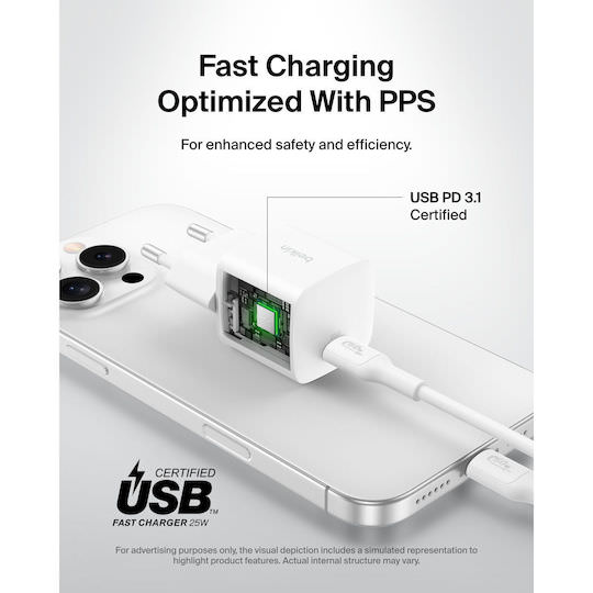 Belkin Φορτιστής Χωρίς Καλώδιο με Θύρα USB-C 25W Power Delivery Λευκός (BoostCharge)