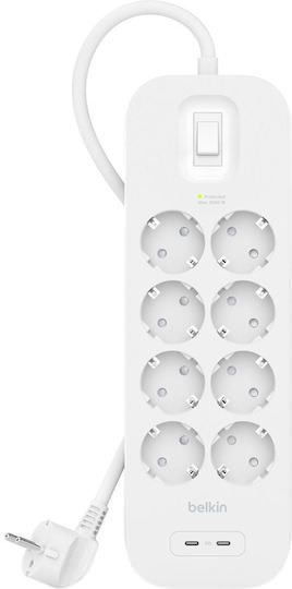 Αυτό το πολύπριζο της Belkin προσφέρει εξαιρετική προστασία και λειτουργικότητα για τις ηλεκτρικές σας συσκευές. Διαθέτει συνολικά οκτώ πρίζες, καθώς και δύο υποδοχές USB-C, επιτρέποντάς σας να συνδέσετε πολλές συσκευές ταυτόχρονα και να φορτίσετε εύκολα το smartphone ή το tablet σας.