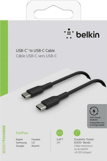 Belkin USB 2.0 Cable USB-C male – USB-C 60W Μαύρο 2m (CAB003bt2MBK)
