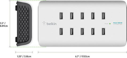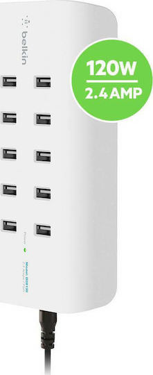Belkin Βάση Φόρτισης με 10 Θύρες USB-A σε Λευκό χρώμα (Rockstar)