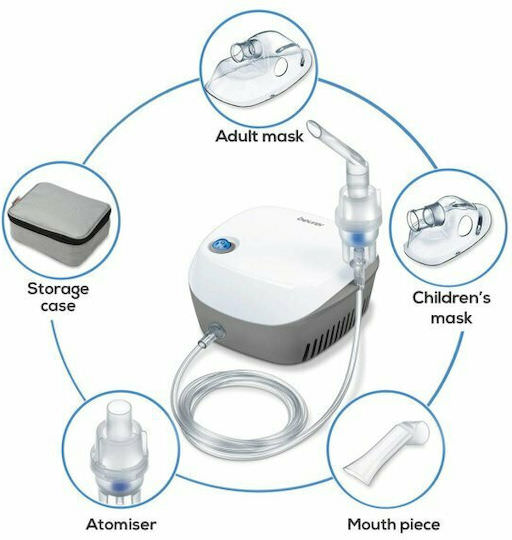 Νεφελοποιητής IH 18 από την Beurer, ο οποίος διαθέτει τεχνολογία πεπιεσμένου αέρα και βοηθά στη θεραπεία των ανώτερων και κατώτερων αεραγωγών, των κρυολογημάτων, του άσθματος και των αναπνευστικών ασθενειών. Είναι πρακτικός στη χρήση και καθαρίζεται εύκολα καθώς διαθέτει λειτουργία αυτοκαθαρισμού.