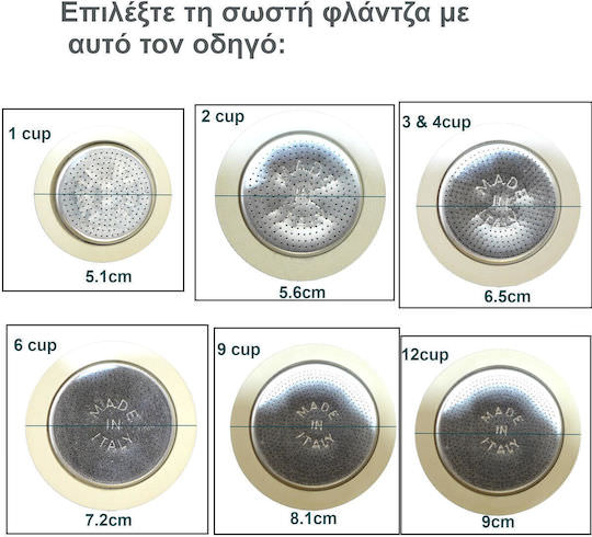 Ανταλλακτικό Φίλτρο & 3 Φλάντζες για 1 μερίδα (για Bialetti moka express -Fiammetta – Break- Happy – Dama – Mini Express – Rainbow