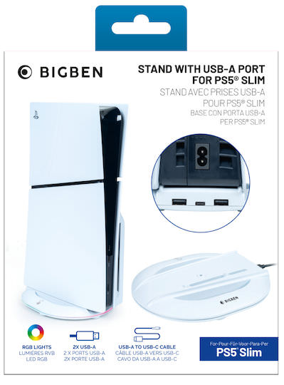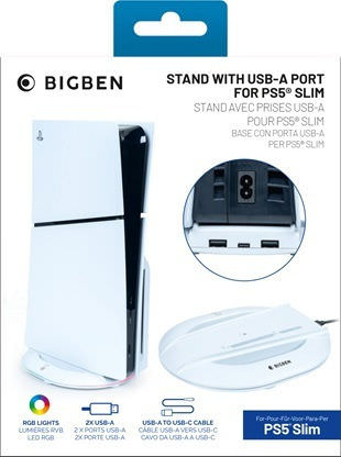 Καινοτόμος κάθετος σταντ σχεδιασμένος για την κονσόλα PS5® Slim. Εξοπλισμένος με ενσωματωμένες θύρες USB και RGB LED για δυναμικό φωτισμό. RGB φωτιστική ταινία με 14 διαφορετικά εφέ. Κουμπί αφής για την αλλαγή των εφέ. Μέγιστη σταθερότητα μέσω βιδών στερέωσης και προσαρμοσμένης βάσης. 2 θύρες USB 2.0 (τροφοδοσία και μεταφορά δεδομένων). 1 καλώδιο USB-A σε USB-C.