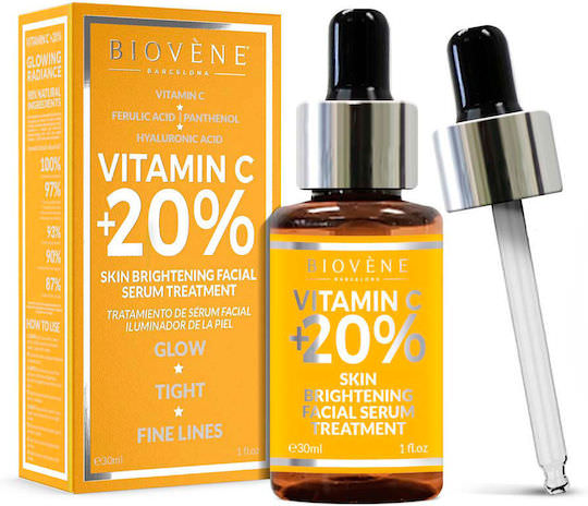 Το Vitamin C +20% Facial Serum Treatment είναι ένα serum βιταμίνης C σε καθαρή μορφή ασκορβικού οξέος που βοηθά στη μείωση των ορατών σημαδιών γήρανσης, ενισχύει τη λάμψη του δέρματος προσφέροντας πιο σφριγηλή και φωτεινή επιδερμίδα. Ο ορός ανανέωσης περιέχει Βιταμίνη C, Υαλουρονικό Οξύ, Πανθενόλη, Φερουλικό οξύ και Βιταμίνη Ε. Είναι κατάλληλο για όλους τους τύπους επιδερμίδας.