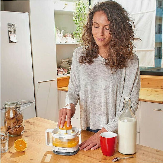 Black+Decker στίφτης εσπεριδοειδών με ισχύς ρεύματος 25W & με εύκολη αποθήκευση του καλωδίου. Διαφανές δοχείο χωρητικότητας 350ml, εύχρηστος ρυθμιστής πολτού με μία απλή στροφή, αποσπώμενα μέρη κατάλληλα για πλύσιμο στο πλυντήριο πιάτων & περιστροφή κώνου διπλής κατευθύνσεως.