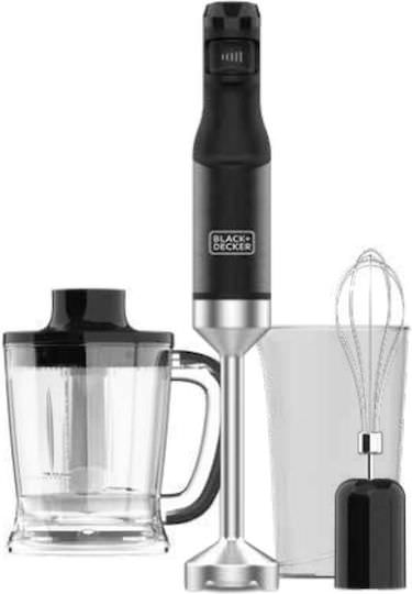 Ραβδομπλέντερ, της εταιρείας Black & Decker, με ισχύ 1500 Watt. Με το ραβδομπλέντερ θα μπορέσετε να πολτοποιήσετε τρόφιμα για παιδικές τροφές, να ομογενοποιήσετε σάλτσες, να φτιάξετε σπιτική μαγιονέζα, να δημιουργήσετε smoothies από οποιοδήποτε φρούτο επιθυμείτε ή ακόμα και να ετοιμάσετε σούπες. Είναι πολύ πρακτικό, εύχρηστο και καταλαμβάνει λιγότερο χώρο, σε σχέση με ένα επιτραπέζιο μπλέντερ. Μεγάλο του πλεονέκτημα αποτελεί το γεγονός ότι μπορείτε να επεξεργάζεστε τα υλικά σας μέσα σε οποιοδήποτε σκεύος, χωρίς να χρειάζεται να τα μεταφέρετε και να συσσωρεύονται στην κουζίνα σας διαρκώς άπλυτα σκεύη. Κατά τη διάρκεια του μαγειρέματος καλό θα είναι να έχετε πάντα την κεφαλή βυθισμένη μέσα στα τρόφιμα που επεξεργάζεστε, ώστε να αποφεύγονται ανεπιθύμητα πιτσιλίσματα αλλά και τυχόν εγκαύματα, στην περίπτωση που το τρόφιμο που επεξεργάζεστε είναι ακόμα καυτό.
