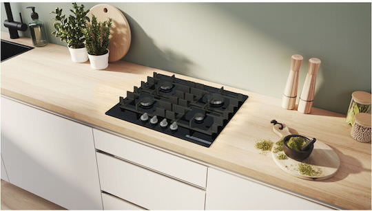 Η εντοιχιζόμενη εστία αερίου Bosch PNP6B6K40 με 4 εστίες και μαύρο γυαλί, προσφέρει ασφάλεια, εργονομία και εύκολο καθαρισμό. Είναι ιδανική για καθημερινή χρήση, με στιβαρή κατασκευή και οικολογική ευαισθησία.