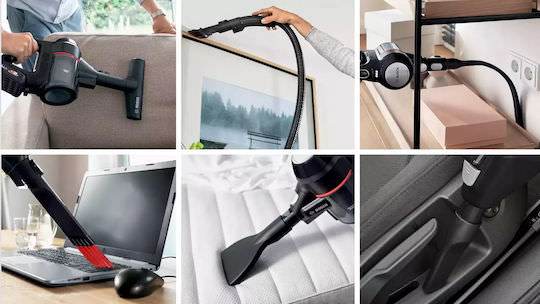 Στη συσκευασία θα βρεις όλα όσα χρειάζεσαι για να ξεκινήσεις δυναμικά το καθάρισμα! Η Bosch Unlimited 7 έρχεται με σκουπάκι χειρός, ευλύγιστο σωλήνα Flex Tube, μηχανοκίνητο πέλμα με φωτισμό LED, μπαταρία 18V Power For All 3,0Ah και τον ταχυφορτιστή της. Περιλαμβάνονται επίσης ένα πέλμα για χαλιά και δάπεδα, πρόσθετο εξάρτημα για έπιπλα και εργαλείο για δυσπρόσιτα σημεία. Με λίγα λόγια, έχεις τον ιδανικό εξοπλισμό για να τα βάλεις με τη σκόνη σε κάθε γωνιά του σπιτιού σου!