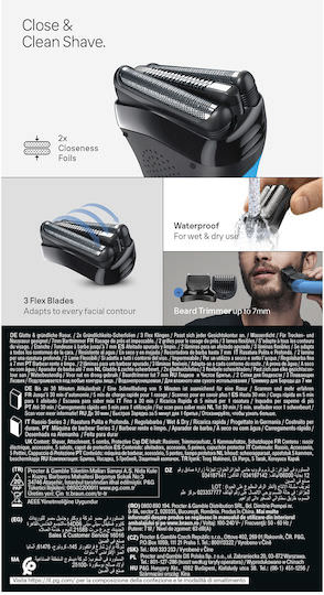 Ξυριστική μηχανή της Braun 3 σε 1 κατάλληλη για ξύρισμα αλλά και τριμάρισμα. Περιλαμβάνει κεφαλή 3-Flex για αποτελεσματικότητα και άνεση στο δέρμα, μία κεφαλή κοπής για γένια και πέντε χτένες (1-7mm). Είναι κατάλληλη για υγρό και στεγνό ξύρισμα για χρήση με νερό, τζελ ή αφρό.