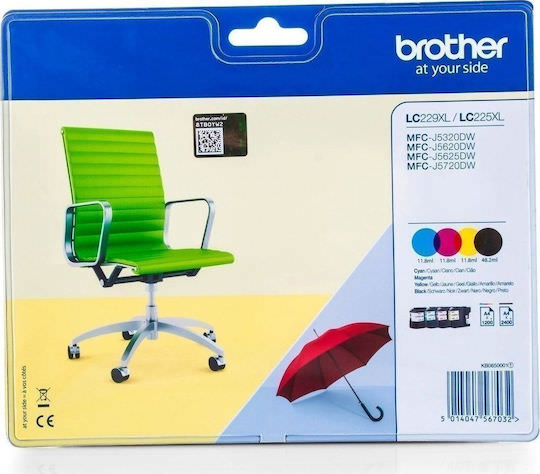 Brother LC229XL Γνήσιο Πακέτο 4 Μελανιών Εκτυπωτή InkJet Κίτρινο / Κυανό / Ματζέντα / Μαύρο (LC-229XLVALBP)