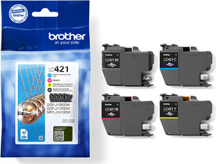 Brother LC421 Γνήσιο Πακέτο 4 Μελανιών Εκτυπωτή InkJet Κίτρινο / Κυανό / Ματζέντα / Μαύρο (LC-421VAL)