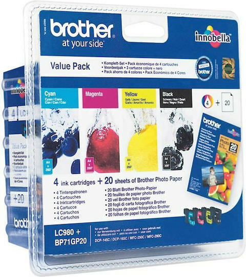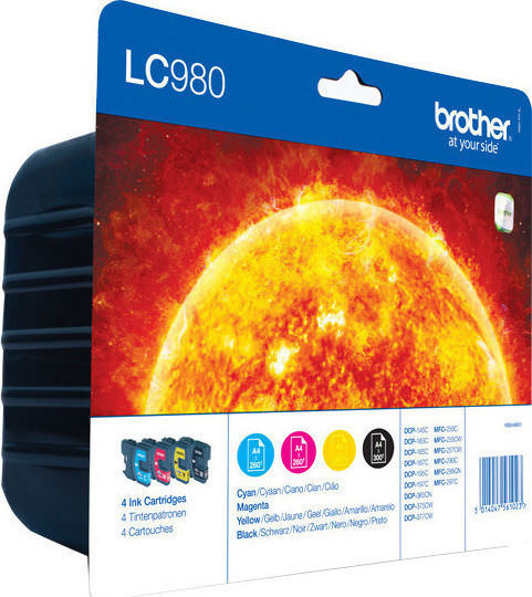 Brother LC980 Γνήσιο Πακέτο 4 Μελανιών Εκτυπωτή InkJet Κίτρινο / Κυανό / Ματζέντα / Μαύρο (LC-980VALBP)