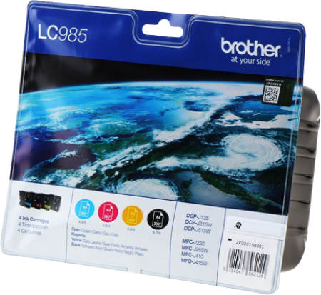 Brother LC985 Γνήσιο Πακέτο 4 Μελανιών Εκτυπωτή InkJet Κίτρινο / Κυανό / Ματζέντα / Μαύρο (LC-985VALBP)