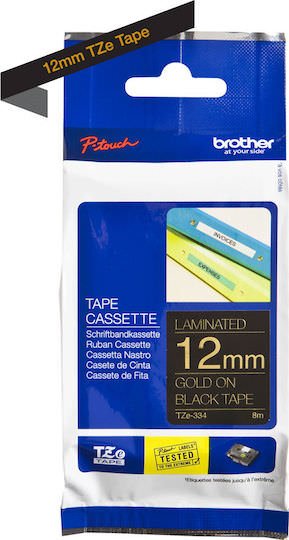 Η γνησία κασέτα ταινίας ετικετογράφου Brother TZe-334 παρέχει καθαρές και ευδιάκριτες ετικέτες που διαρκούν. Είναι ιδανική για χρήση στο σπίτι, το γραφείο ή τον εργασιακό χώρο. Αυτή η λαμινάτη ταινία TZe-334 σε χρυσό φόντο με μαύρο μπορεί να χρησιμοποιηθεί για την αναγνώριση περιεχομένων, όπως φάκελοι, ράφια, USB flash drives, καλώδια και άλλος εξοπλισμός. Οι αυτοκόλλητες λαμινάτες ετικέτες έχουν σχεδιαστεί για να αντέχουν σε ακραίες θερμοκρασίες και είναι ανθεκτικές σε χημικά, φθορές, ηλιακό φως και υποβρύχια χρήση, καθιστώντας τις κατάλληλες για εσωτερικούς και εξωτερικούς χώρους. Οι κασέτες ταινίας TZe εγκαθίστανται γρήγορα και εύκολα και διατίθενται σε διάφορα πλάτη, χρώματα και υλικά, εξασφαλίζοντας ότι η συσκευή P-touch σας καλύπτει όλες τις ανάγκες ετικετογράφησης.