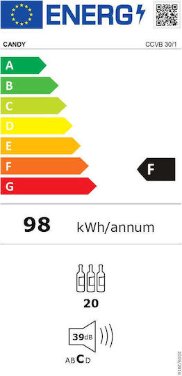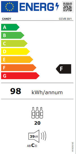 Σύμφωνα με το New Energy Label, αυτή η κάβα είναι κατηγορίας F. Σε σύγκριση με τις συσκευές G-class, μειώνει τις καταναλώσεις έως και 34%, εξοικονομώντας ενέργεια, χρήματα και σεβόμενοι το περιβάλλον.