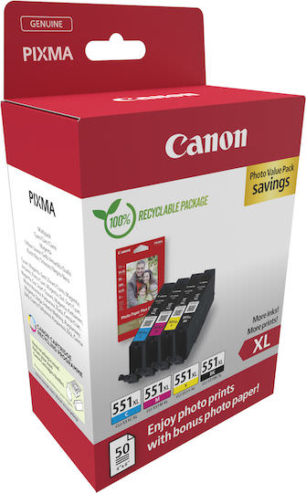 Πακέτο 4 Μελανιών Canon CLI-551XL Photo Value Pack Black/Cyan/Magenta/Yellow 6443B008