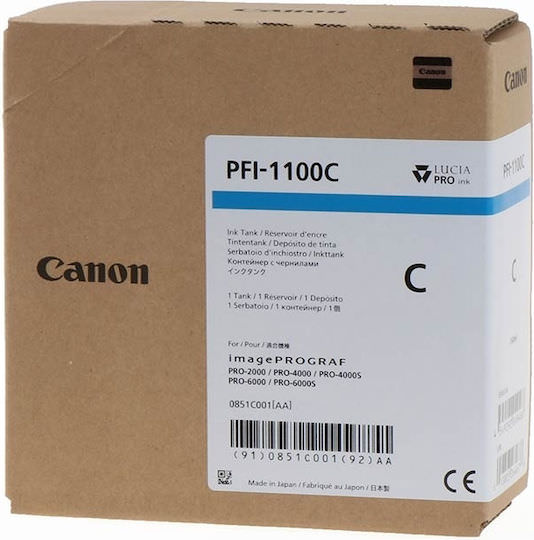 Canon PFI-1100 Γνήσιο Μελάνι Εκτυπωτή InkJet Κυανό (0851C001)