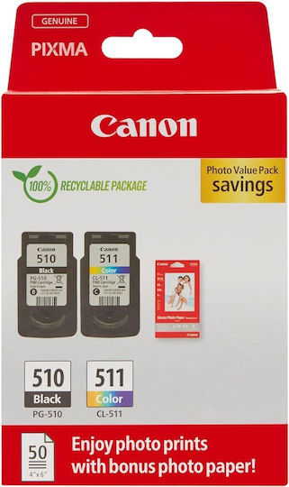 Canon PG-510 Γνήσιο Photo Value Pack με 1 Μελάνι InkJet Κυανό / Ματζέντα / Κίτρινο / Μαύρο (2970B017)