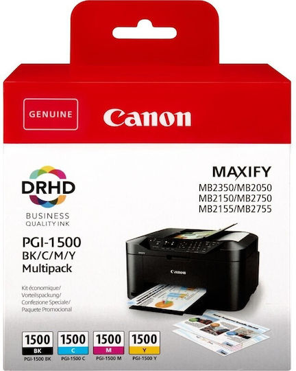 Canon PGI-1500 Γνήσιο Πακέτο 4 Μελανιών Εκτυπωτή InkJet Κίτρινο / Κυανό / Ματζέντα / Μαύρο (9218B006)