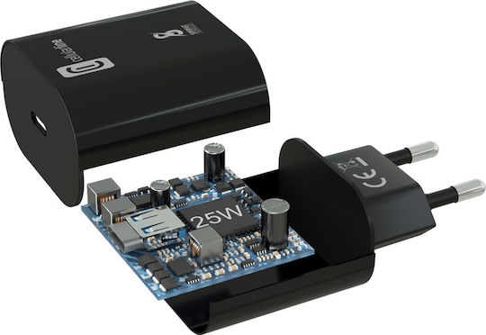 Cellular Line Φορτιστής Χωρίς Καλώδιο με Θύρα USB-C 25W Power Delivery Μαύρος (ACHSMUSBCPD25WK)