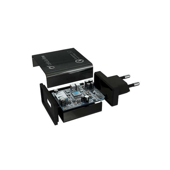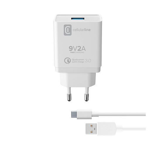 Cellular Line Φορτιστής με Θύρα USB-A και Καλώδιο USB-C 18W Quick Charge 3.0 Μαύρος (ACHHUKITQCTYCK)