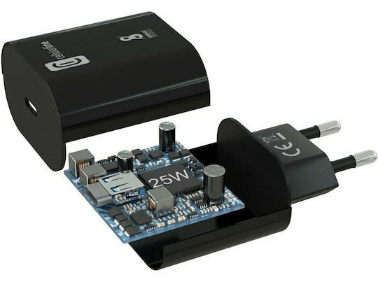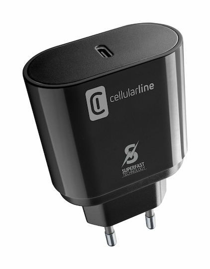 Cellular Line Φορτιστής με Θύρα USB-C και Καλώδιο USB-C 25W Power Delivery Μαύρος (ACHSMKITC2CPD25W)