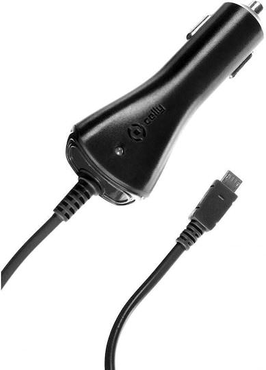 Celly Car Charger 1A Micro USB Φορτιστής Αυτοκινήτου 1A Γρήγορης Φόρτισης μαζί με Καλώδιο Micro-USB Μαύρο Χρώμα