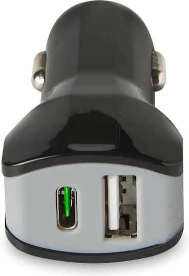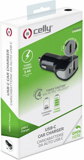 Celly Φορτιστής Αυτοκινήτου 17W 3.4A με Θύρες: 1xUSB 1xType-C μαζί με Καλώδιο Type-C Μαύρος