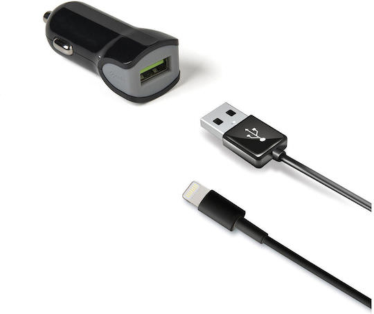 Celly Φορτιστής Αυτοκινήτου Turbo Car Charger 2.4A Lightning 12W 2.4A με μία Θύρα: 1xUSB μαζί με Καλώδιο Lightning Μαύρος