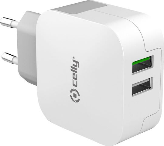 Celly Φορτιστής Χωρίς Καλώδιο με 2 Θύρες USB-A Λευκός (TC2USBTURBO)