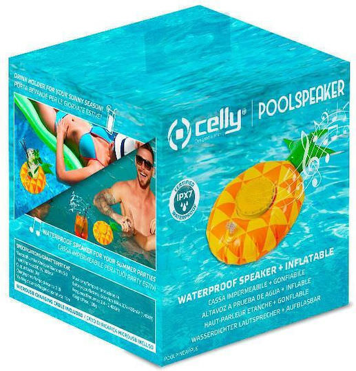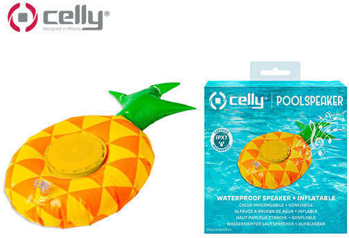 Τα καλοκαιρινά πάρτι δίπλα στη πισίνα ή τη θάλασσα αποκτούν άλλο αέρα με το αδιάβροχο Bluetooth ηχείο της Celly και το φουσκωτό σε σχήμα ανανά.